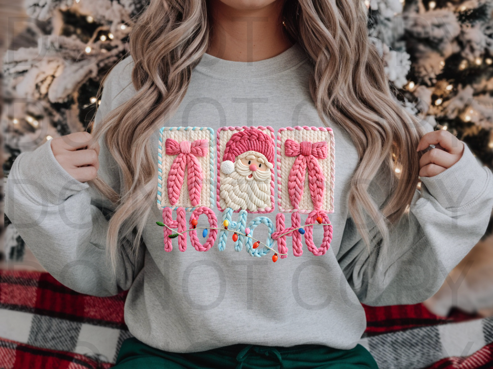 Faux Knit Yarn - Pink Ho, Ho, Ho #5918 - Ready to Press DTF Transfer Full Color