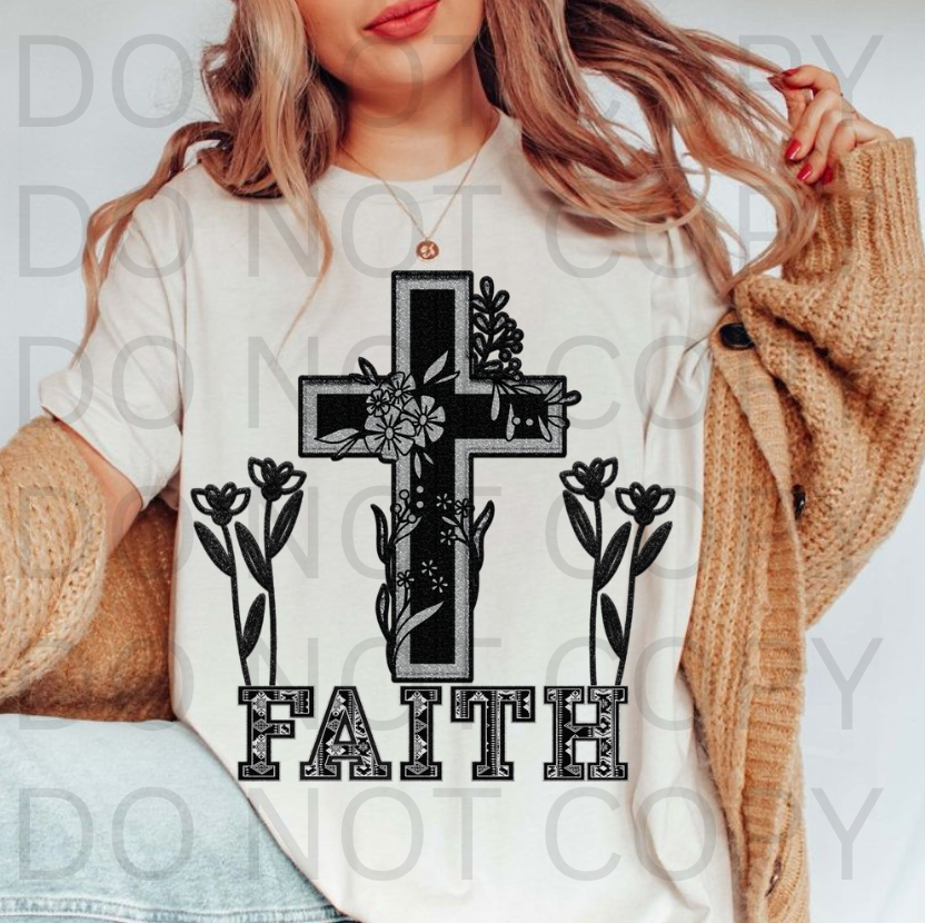 Glitter Black Faith Cross #5663 - Ready to Press DTF Transfer Full Color