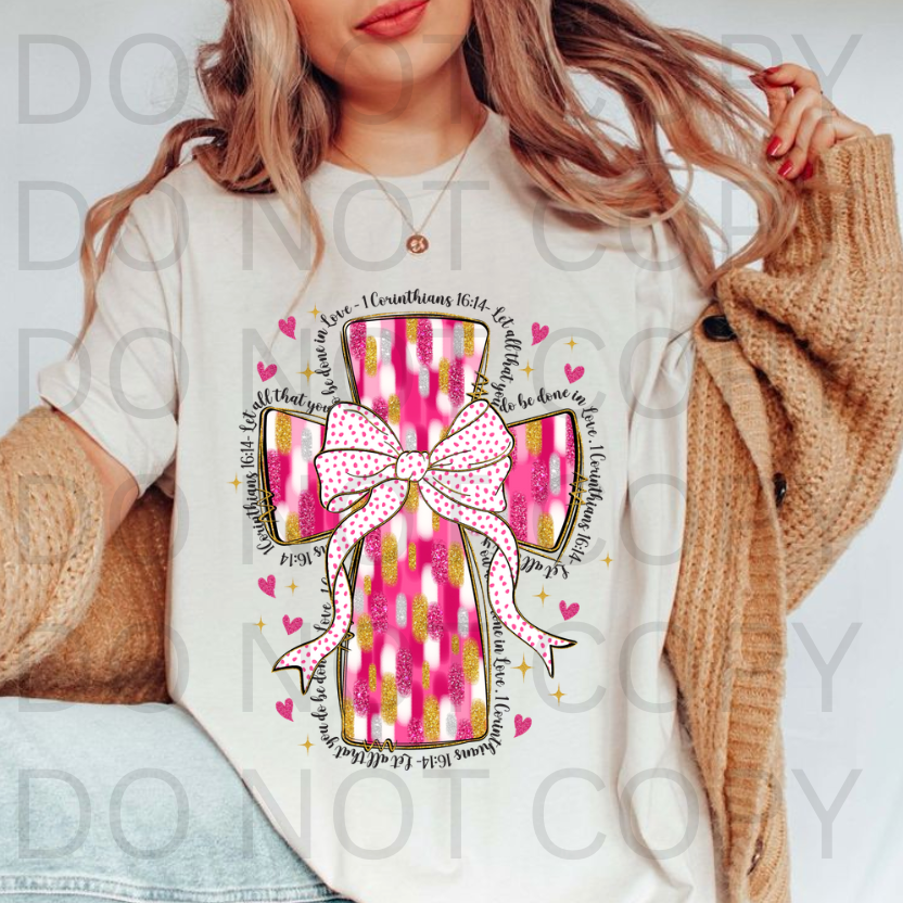 Pink Cross with Bow #5661 - Ready to Press DTF Transfer Full Color