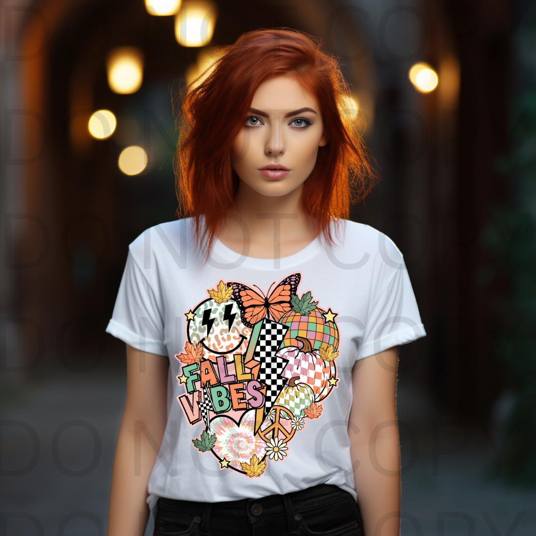 Retro Fall Vibes Collage #5525- Ready to Press DTF Transfer Full Color
